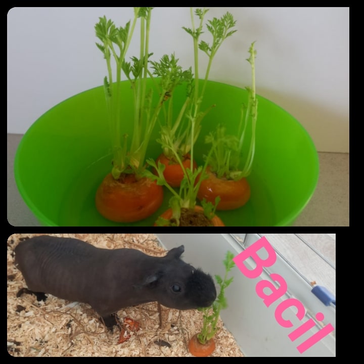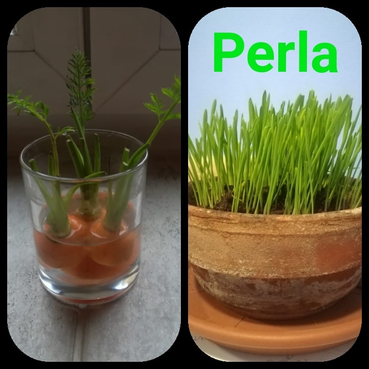 Mrkev a petržel - odkrojenou horní část mrkve (stačí i 2-3 cm) postavíme do nádobky s vatou nebo je možné mrkev postavit přímo do vody. V obou případech pravidelně doplňujeme čerstvou vodu. Necháme růst u okna na sluníčku.