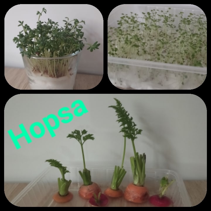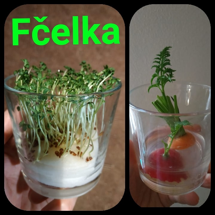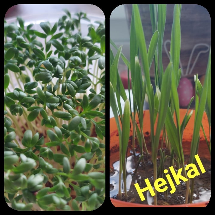 Řeřicha - mističku (klidně stačí víčko od zavařovací sklenice) nebo skořápku od vajíčka vysteleme vatou, kterou hustě posypeme semínky řeřichy (semínka se mohou vzájemně dotýkat). Vatu pravidelně zvlhčujeme, nesmí nikdy úplně vyschnout. Necháme růst u okna na sluníčku.